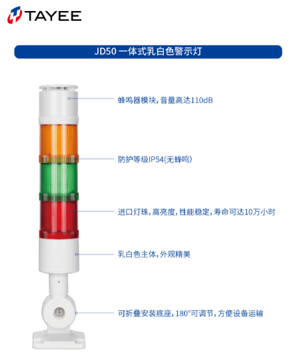 全新JD50一體式乳白色警示燈沿襲了JD系列警示燈一貫的精良設(shè)計(jì)